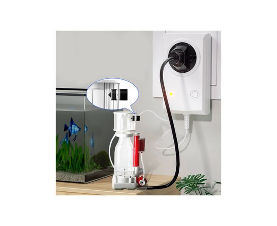 Защита от перелива скиммера Jebao ASS-600. Удобное магнитное крепление оптического датчика на чашу пенника. При достижении водой уровня датчика, умная розетка автоматически отключает скиммер.