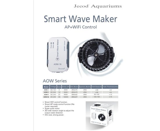 Технические характеристики различных версий проточного насоса/генератора волн Jecod AOW Wi-Fi