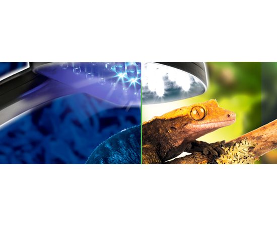Светильник Exo-Terra Day & Night LED комбинирует дневное и ночное освещение в террариуме. Подходит для дневных и ночных видов Светильник подойдет любым рептилиям, амфибиям и беспозвоночным. Днем он испускает яркий белый свет, а ночью - мягкое голубовато-синее свечение. Такая подсветка создаст в ночном террариуме отличную видимость, что позволит вести наблюдение за самыми скрытными питомцами. Голубоватое лунное освещение необходимо ночным животным для ориентации в пространстве, поисков корма или брачного партнера. Оно не нарушает их суточного цикла и не вызывает стресс. Управляется одним прикосновением Для того, чтобы сменить дневное освещение на ночное и наоборот, достаточно прикоснуться к сенсорной кнопке на светильнике. Белые и синие светодиоды осветят террариум ярким дневным светом или мягким лунным сиянием. Этот энергосберегающий светильник расходует практически всю энергию на свет и почти не испускает тепла. Его светодиоды потребляют мало энергии и имеют очень долгий срок службы. Технические характеристики серии Exo-Terra Day & Night LED:
