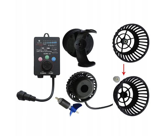 Помпа течения Jecod SOW для морских и рифовых аквариумов с волновым контроллером. Течение создается близкое к естественному. Крепится с помощью магнитного держателя.