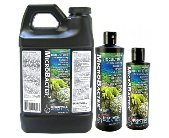 Brightwell Aquatics MicrōBacter 7-это селективный комплекс чрезвычайно эффективных микробов и ферментов, который быстро снижает концентрации органического азота, аммиака, нитритов, нитратов, фосфатов и органического углерода во всех морских и пресноводных экосистемах, что приводит к значительному улучшению качества воды, а хорошее качество воды обычно приводит к более здоровым обитателям аквариума.