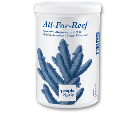В связи с ростом организмов и другими процессами, протекающими в аквариуме, происходит потребление минеральных веществ, которые необходимо регулярно пополнять. Это, прежде всего, такие элементы как кальций, магний, стронций, а также карбонатные соли жесткости для роста известковых скелетов каменистый кораллов, кораллиновых красных водорослей и других организмов, живущих в рифах. Tropic Marin® All-For-Reef содержит все эти компоненты в высококонцентрированной форме. Кроме того, в этом препарате имеются все основные микроэлементы: йод, бром и фтор для роста и укрепления скелета горгонарий, губок и ракообразных, селен для устранения свободных радикалов, а также железо, магний, цинк, медь, никель, хром, кобальт, молибден и ванадий для развития важных ферментных комплексов.