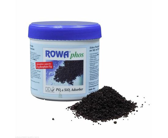 -При использовании в морском аквариуме в течении 4 лет , при которых 5 раз RowaPhos был заменен, фосфаты начали расти только через 6-8 месяцев , после извлечения RowaPhos с системы.