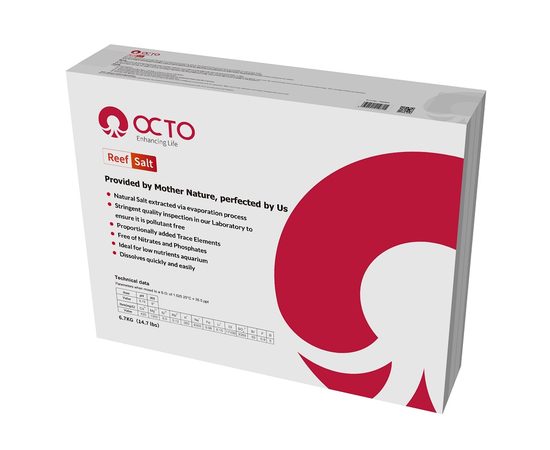Природная морская соль очищенная под контролем лаборатории Reef Octopus и обогащённая микроэлиментами. Без нитратов и фосфатов. Растворяется быстро без осадка.