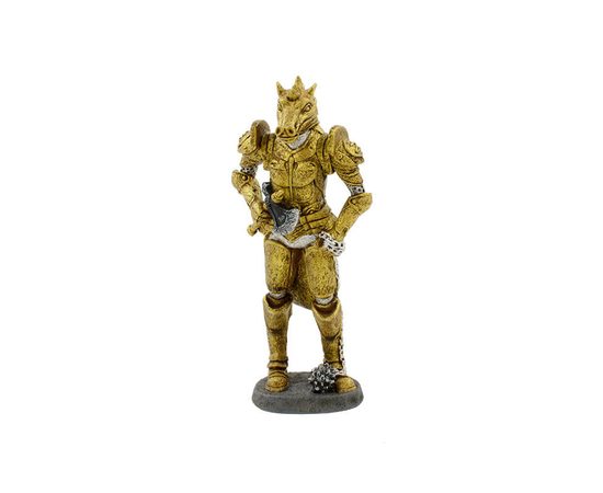 Декорация пластиковая от компании Prime под названием Рыцарь Крокко имеет размер 7.5х5х16 сантиметров. Воин с золотыми доспехами, на голове шлем в виде крокодила. Прекрасно подойдет для оформителя, кто желает поставить замок и рыцарей. Рыцаря можно поставить вместе с другими войнами из этой серии. Идеально будет смотреться в аквариуме от 200 литров. Декорация сделана из не токсичного пластика, который безопасен для рыб. Перед первым использованием нужно ополоснуть под проточной водой. Тонет в воде.