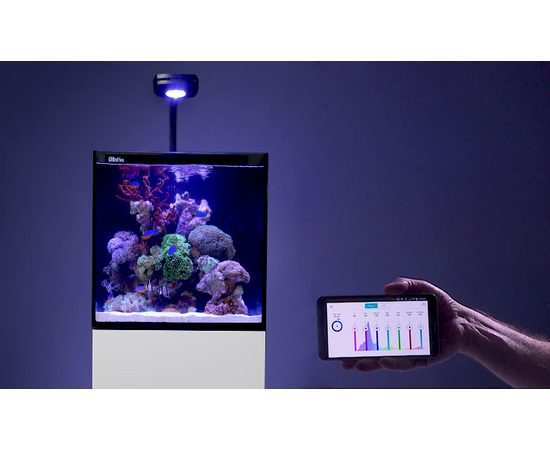 Годы исследований и разработок позволили в 2017 году придумать идельное решение для рифового аквариума. Этот аквариум поставляется с черной облицовкой. Передовые технологии позволили использовать светодиодное освещения и управлять им через интернет на компьютере, планшете или телефоне. Работает на iOS и Android устройств и с любого Mac или PC. Полный спект светодиодов, используется 7 видов светодиодов и множетство режимов, закат, рассвет, облака, молния и т.д. Всего в 55вт потребляемая мощность.Светодиодный блок прочно крепится к аквариуму и может поворачиваться, обеспечивая легкий доступ к сампу для всех регулярного технического обслуживания.