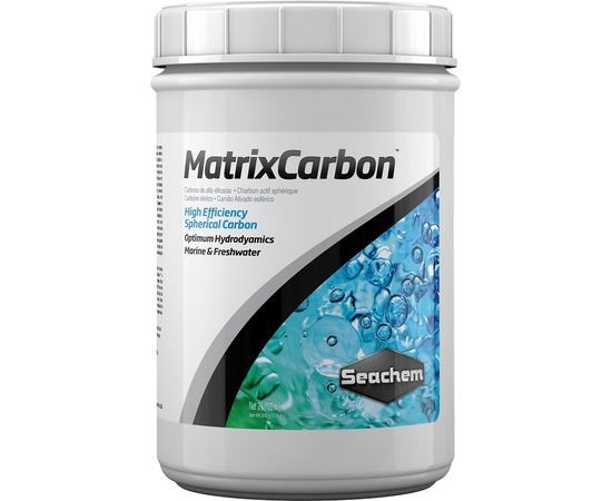 • MatrixCarbon- уникальный активированный уголь в форме шариков, улучшающих гидродинамические качества препарата и препятствующих уплотнению материала. Это позволяет пропускать максимальный объем воды и увеличивает полезную площадь, контактирующую с водой. Seachem MatrixCarbon содержит малое количество золы и, таким образом, пректически не влияет на уровень pH. Даже будучи добавленным в дистиллированную воду, уголь не повышает pH выше 7.0. В то время как другие марки угля содержат фосфаты, не говоря уже о лишних примесях, Seachem MatrixCarbon имеет наименьшее обнаружимое количество вымываемых фосфатов среди всех идентичных протестированных продуктов.