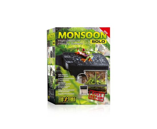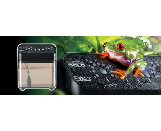 Exo-Terra Monsoon Solo – компактная система осадков для автоматизированного орошения тропических террариумов и комнатных оранжерей.Посмотреть Exo-Terra Monsoon Solo в работе можно ниже (см. видео на англ. яз.)Система осадков поддерживает высокую влажность в террариуме Принцип ее работы очень прост. Достаточно установить нужную частоту и длительность осадков, и устройство начнет орошать террариум по заданному алгоритму. Система распыляет воду очень мелкими брызгами.