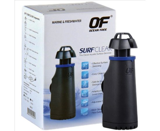 Данное оборудование имеет прямое назначение. Устанавливается в аквариум у поверхности воды, так что бы головка выступала полностью из тела скиммера. Таким образом скиммер будет работать даже тогда когда изменяется уровень воды в аквариуме. Основная и единственная роль скиммера в аквариуме это уборка бактериальной пленки с поверхности аквариума. Скиммер может быть применен как в пресноводном так и в морском аквариуме. Он имеет небольшую помпу в основании, производительностью 200 литров в час, которая позволяет организовать ток воды в скиммер. В скиммере предусмотрена небольшая степень механической очистки (губка), тем самым задерживая различный мусор в себе. Время от времени губку необходимо вытаскивать и промывать в проточной воде для пресных аквариумов и в осмотической воде для морских аквариумов.