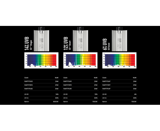 Мощность UVB позволяет устанавливать этот светильник на расстоянии от 25 до 70 см от рептилии, при этом мощность света и уровень UVB будет намного выше, чем в любых конкурирующих товарах подобного типа.