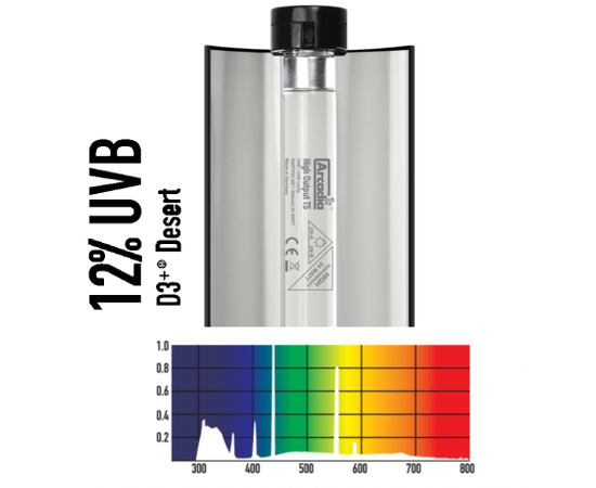 <div>Этот простой в использовании комплект, может быть легко закреплен внутри или снаружи террариума, или уложен на проволочную сетку сверху в стеклянном террариуме. Его гладкий, фирменный дизайн и специально изогнутый отражатель, гарантируют, что вы займете намного меньше места, но спроецируете, как можно больше света в вашем террариуме. В комплект набора также входит соединительный кабель, с помощью которого происходит соединение до 10 светильников в одну цепь, которые могут работать от соответствующего одиночного источника питания. Светильник ARCADIA PRO T5 UVB KIT D3+ Desert 12% UVB "маленький, но могучий". Это достигается благодаря специальному рефлектору, который входит в набор. Рефлектор очень удобен в эксплуатации, легко снимается, для очистки, и имеет 2 угла отражения от каждой кривой. Это значит что он проектирует высокие уровни света, с высоким значением UV-индекса, создавая правильную, так называемую, зону баскинга. Мощность UVB позволяет устанавливать этот светильник на расстоянии от 25 до 70 см от рептилии, при этом мощность света и уровень UVB будет намного выше, чем в любых конкурирующих товарах подобного типа. Светильник ARCADIA PRO T5 UVB KIT D3+ Desert 12% UVB создан для ценнителей качества и дизайна.