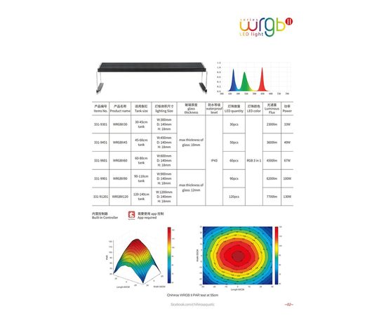Несмотря на название серии WRGB (White, Red, Green, Blue) - Chihiros WRGB 2 не имеет в "на борту" белого светодиода, и правильнее было бы называть эту версию светильников именно RGB, но производитель предпочел сохранить название предыдущей версии. В Chihiros WRGB2 Series используются мощные трехкристальные RGB светодиоды (три чипа в одном корпусе), которые дают яркие, контрастные и насыщенные цвета в аквариуме. Такие же светодиоды используются в флагманской линейке светильников Chihiros Vivid.