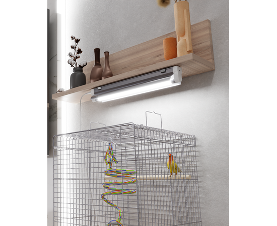 В комплекте: светильник, ультрафиолетовая лампа Zooda, провод питания 1,15 м, клипсы для крепления к горизонтальной поверхности.