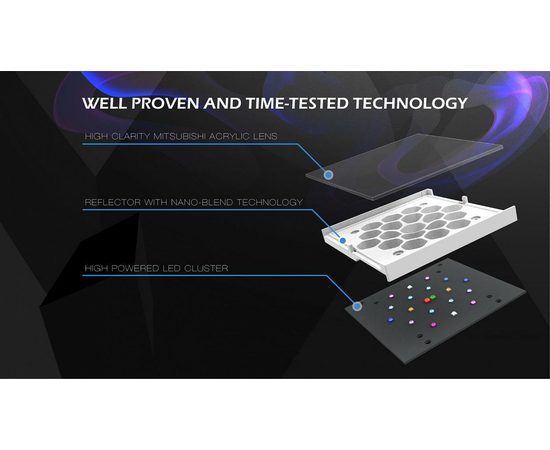 Система освещения RSX сконструирована для того чтобы обеспечить все диапазоны спектра цвета требуемых кораллами, для того чтобы увеличить скорость их роста, улучшить их окрас, и в тоже время придать вашему аквариуму наиболее эстетическое сочетание цветов.