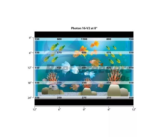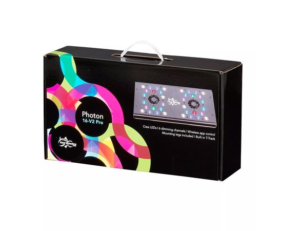 Photon 16-V2 Pro идеально подходит для аквариумов с sps, смешанных или мягких рифов длиной до 30 дюймов (76 см) и размерами 16 "x 8,5" x 1" (40.6 х 21.5 х 2.54 см).