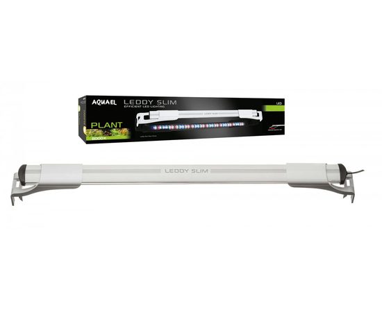 Светильник Aquael LEDDY SLIM PLANT 10Вт. Для аквариума шириной от 50 до 70 сантиметров.Крепиться светильник на две стенки аквариума. Цветовая температура: 8 000 К Световой поток: 650 лм .Cовременная, энергосберегающая светодиодная технология . спект освещения передает естественную окраску рыб и растений . У светильника хорошая светоотдача. Светодиоды рассчитаны на долгую службу, не менее 50000 часов.