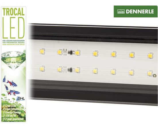 Качественные светодиодные светильники TROCAL LED поражают своей очень высокой мощностью, оптимальным тепловым режимом, сроком службы более 80 000 часов работы. Светодиоды установлены на керамической подложке, которая обеспечивает лучший отвод тепла, и создает мощный световой поток и долгий срок службы. Производитель гарантирует высокую яркость с минимальным набором светодиодов. Благодаря оптимальному освещению и цветопередачи, растения бурно растут , а рыбы смотрятся более выигрышно.