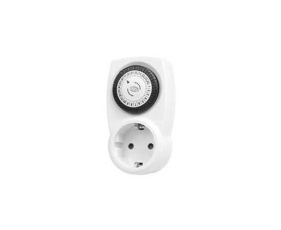 Таймер механический суточный белый. Возможно установить 48 программ включения и выключения ежедневно. Минимальный интервал ВКЛ/ВЫКЛ 30 минут. Возможность ручного ВКЛ/ВЫКЛ. Встроенная защита от детей.