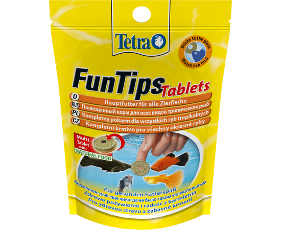 Tetra FunTips Tablets - это биологически сбалансированный корм в виде приклеивающихся таблеток. Корм в виде двухцветных для усиления яркости окраски и повышения жизненных сил рыбок. Корм обеспечивает здоровое питание и веселое времяпрепровождение, а также привносит в рацион захватывающее разнообразие.Таблетки крепятся к стеклу аквариума. В пачке 75 таблеток, хватит на продолжительное время.