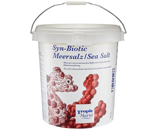 Новая морская соль Tropic Marin Syn-Biotic содержит пробиотические бактерии для рыб и креветок, а также специальный пребиотический корм, способствующий размножению пробиотических бактерий и созданию среды с низким содержанием питательных веществ в аквариумах, заселенных крупнополипными (LPS) и мелкополипными (SPS) жесткими кораллами. Термин synbiotic (синбиотик) относится к пищевым добавкам, содержащим синергетическую комбинацию про- и пребиотиков.