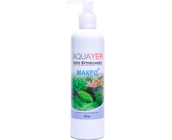 AQUAYER Удо Ермолаева МАКРО+ ежедневное удобрение для аквариумных растений. Cодержит калий (K), азот (N) и фосфор (P) необходимые для быстрого роста растений. Компонент системы удобрений для аквариумных растений Ермолаева (см. инфографику ниже).